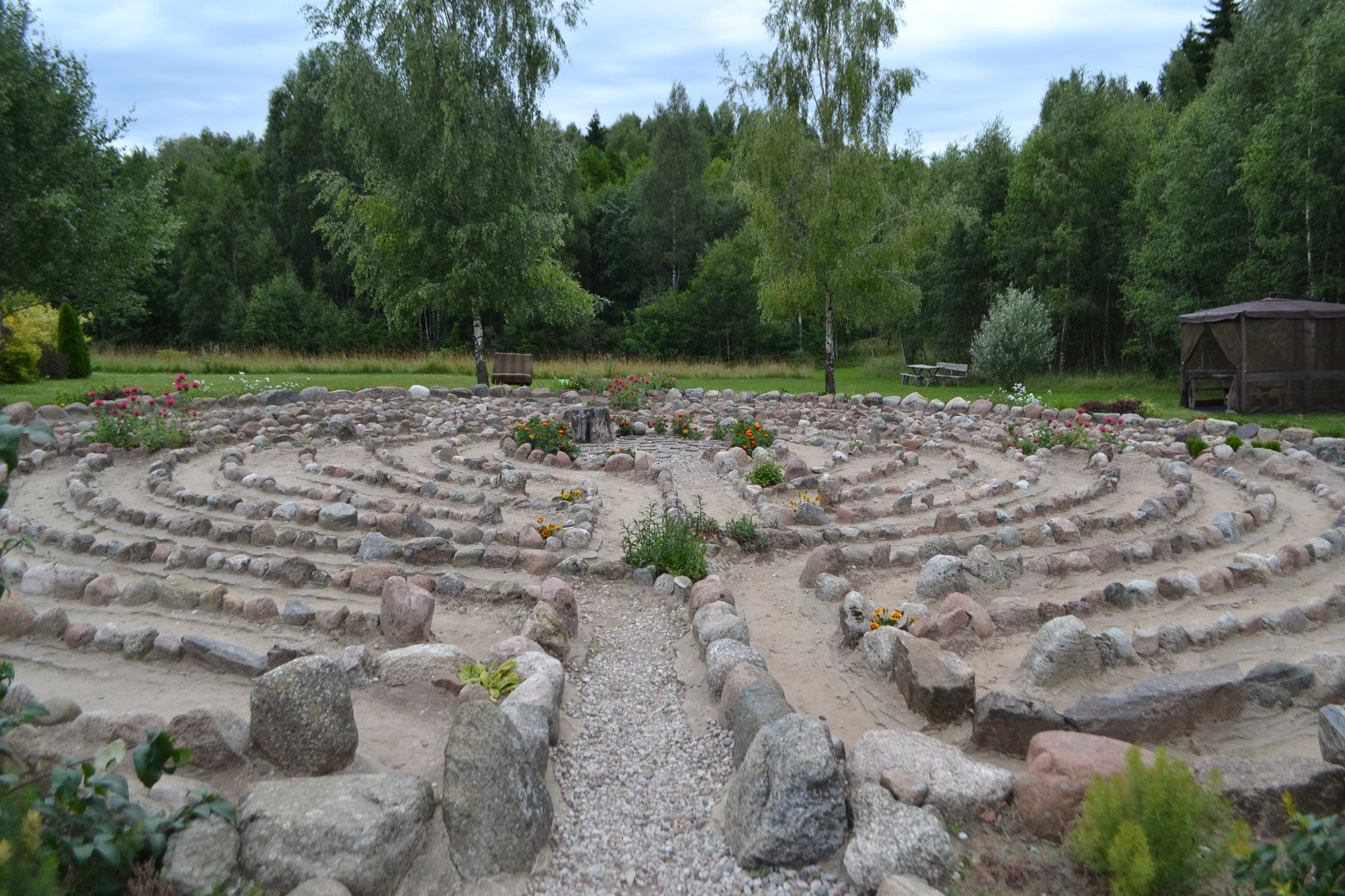 Parke šiuo metu yra šie labirintai: Vidinio, Meilės ir draugystės, Penkių elementų ir arkangelų, Vidinės pusiausvyros, Čakrų. Taip pat šios figūros: Kupolas, Mandala, Merkaba.