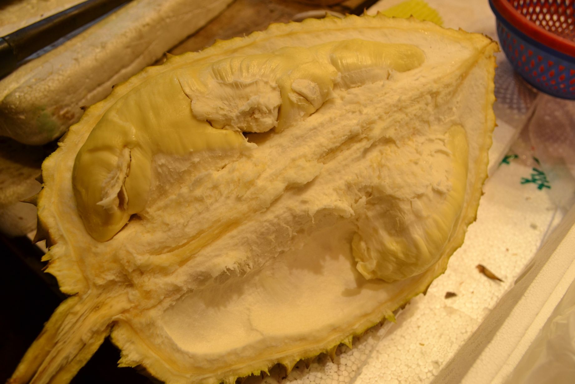 Sunokęs vaisiaus vidus yra baltos arba gelsvos spalvos, minkštas ir primenantis kremą arba drebučius. Jis nėra nei labai sultingas, nei labai saldus, toks švelniai saldžiarūgštis ir tikrai skanus. Nors valgant durijaus vaisių atrodo, lyg valgytum grietininį kremą, bet iš tiesų jame nėra riebalų, tik gausu baltymų ir krakmolo. Vaisių geriausia valgyti, kai skrandis yra tuščias, nes ten jis greitai pradeda fermentuotis ir rūgti, išsiskiria įvairios rūgimo dujos, tad vėliau atsirūgstama ne pačiais maloniausiais kvapais.